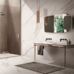 Marble looks are skillfully combined, to create a surprising crossover style ideal for highly contemporary architectural solutions